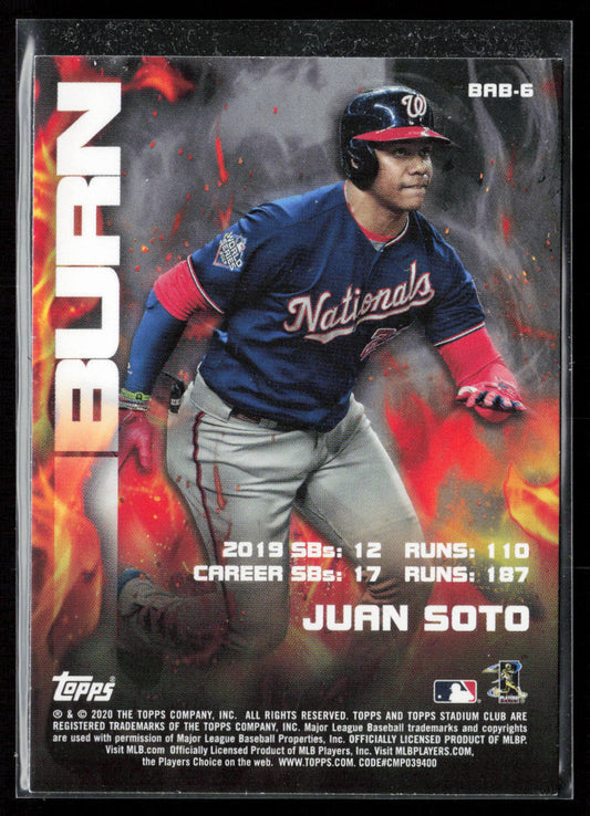 2020 Stadium Club #BAB-6 Juan Soto Bash & Burn Red