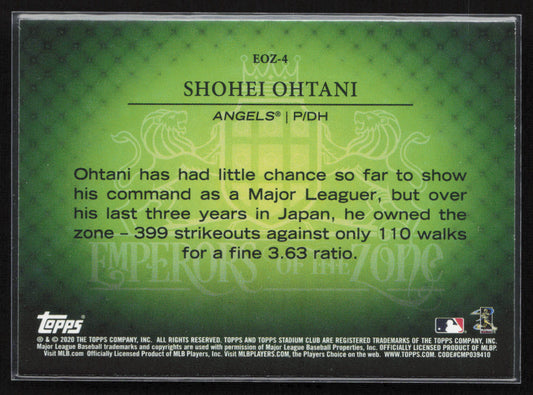 2020 Stadium Club #EOZ-4 Shohei Ohtani Emperors of the Zone