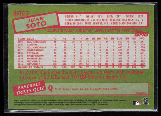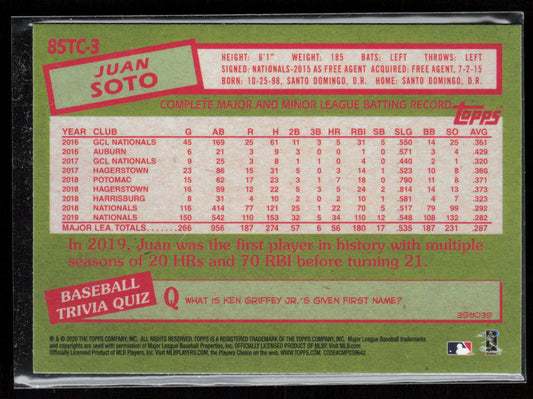 2020 Topps Chrome #85TC-3 Juan Soto 1985 Topps Baseball