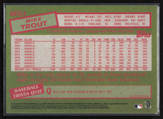 2020 Topps Chrome #85TC-1 Mike Trout 1985 Topps Baseball