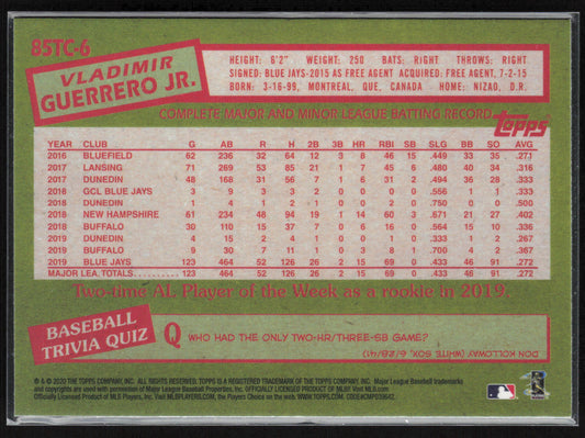 2020 Topps Chrome #85TC-6 Vladimir Guerrero Jr. 1985 Topps Baseball