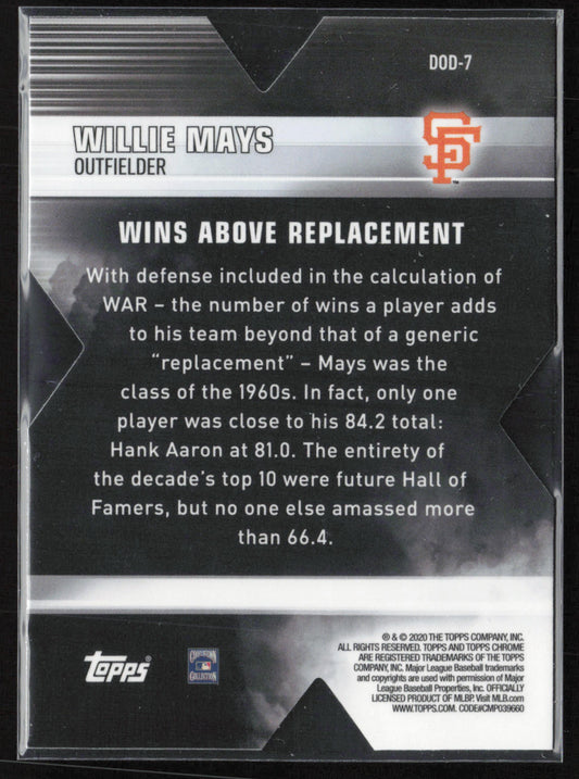 2020 Topps Chrome #DOD-7 Willie Mays Decade of Dominance Die Cut