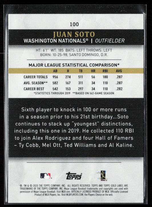 2020 Topps Gold Label #100 Juan Soto Class 1 Black
