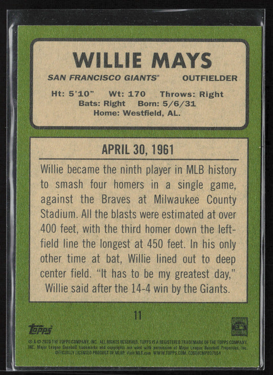 2020 Topps Heritage #11 Willie Mays 20 Giants Seasons