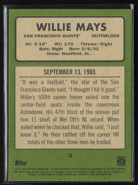 2020 Topps Heritage #14 Willie Mays 20 Giants Seasons