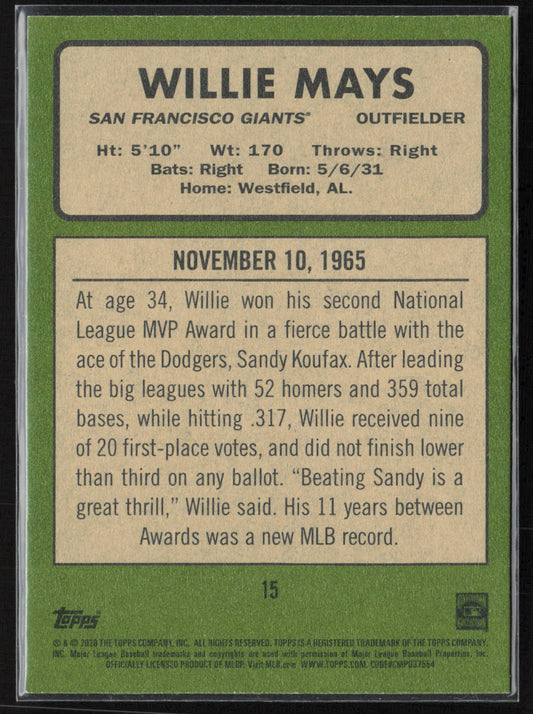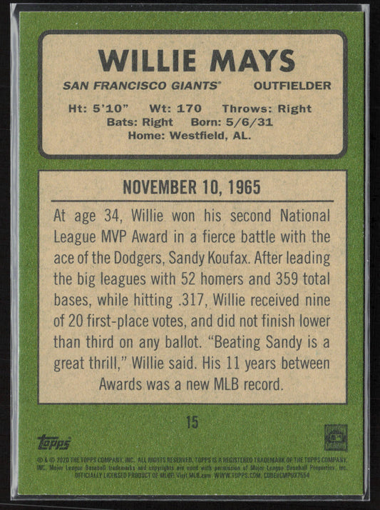 2020 Topps Heritage #15 Willie Mays 20 Giants Seasons