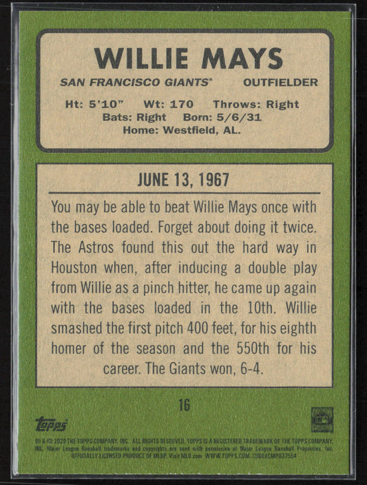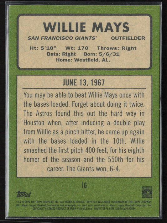 2020 Topps Heritage #16 Willie Mays 20 Giants Seasons