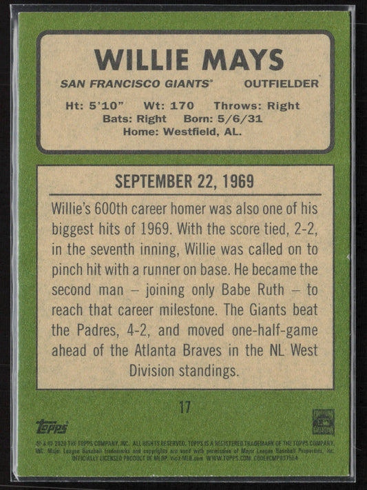2020 Topps Heritage #17 Willie Mays 20 Giants Seasons