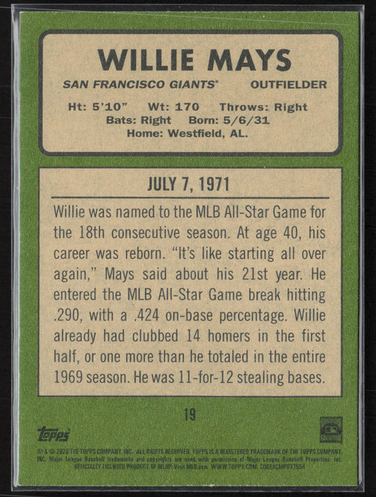 2020 Topps Heritage #19 Willie Mays 20 Giants Seasons
