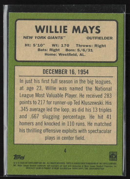 2020 Topps Heritage #4 Willie Mays 20 Giants Seasons