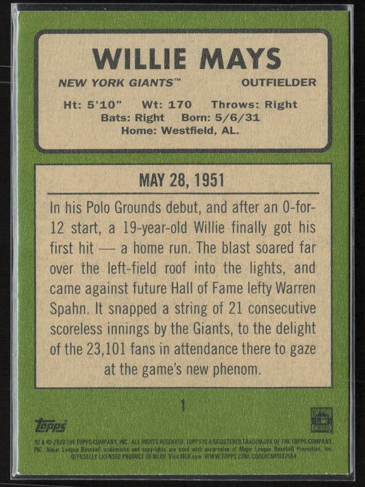 2020 Topps Heritage #1 Willie Mays 20 Giants Seasons