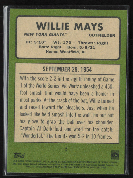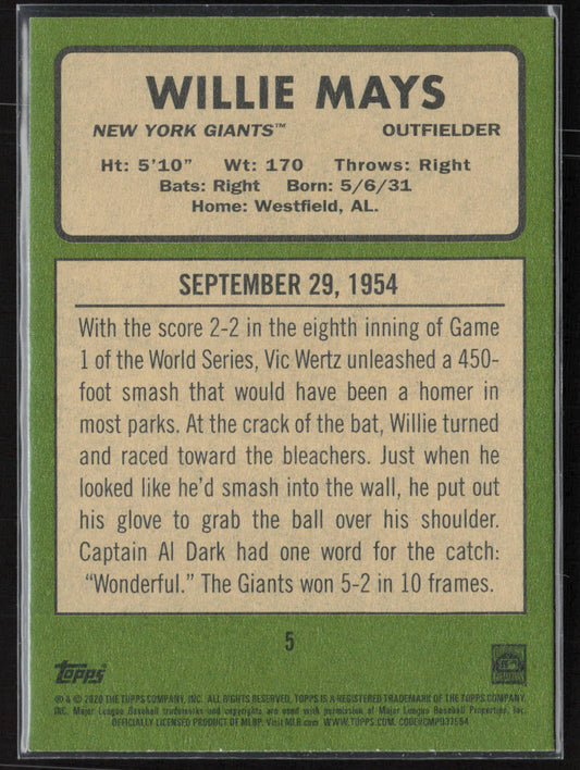 2020 Topps Heritage #5 Willie Mays 20 Giants Seasons