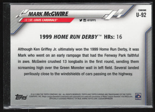 2020 Topps Chrome Update #U-92 Mark McGwire