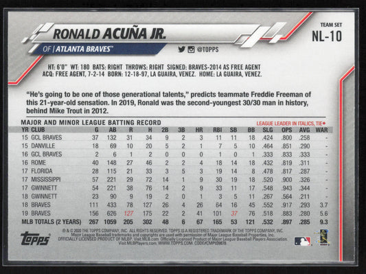 2020 Topps National League Standouts #NL-10 Ronald Acuña Jr.