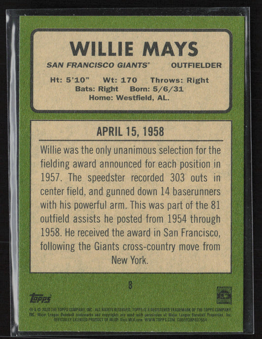 2020 Topps Heritage #8 Willie Mays 20 Giants Seasons