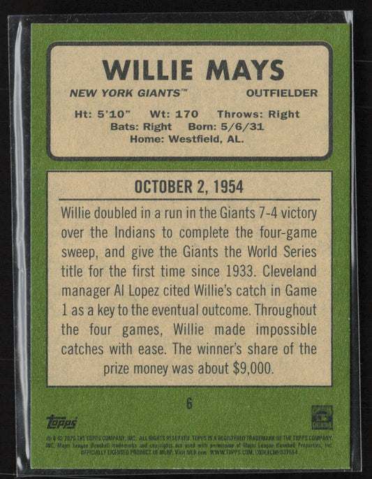 2020 Topps Heritage #6 Willie Mays 20 Giants Seasons