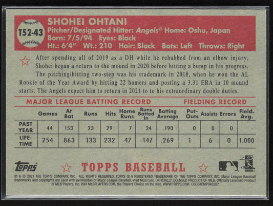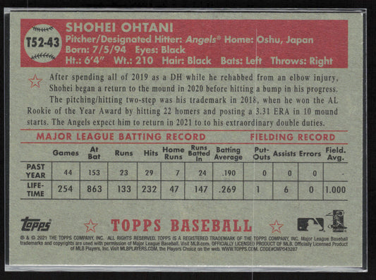2021 Topps #T52-43 Shohei Ohtani 1952 Topps Redux