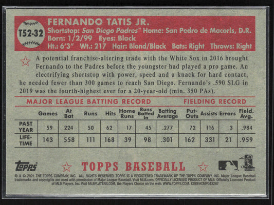 2021 Topps #T52-32 Fernando Tatis Jr. 1952 Topps Redux
