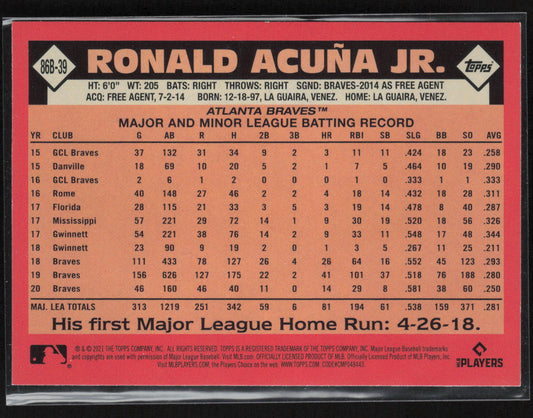 2021 Topps Update #86B-39 Ronald Acuña Jr. 35th Anniversary