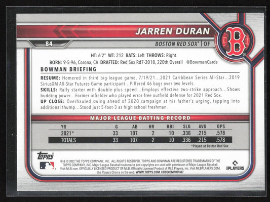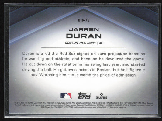 2022 Bowman #BTP-72 Jarren Duran Bowman Scouts' Top 100