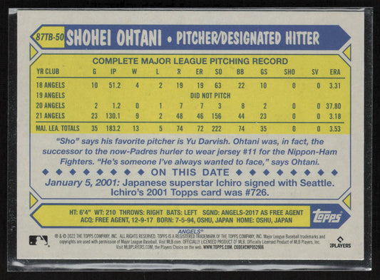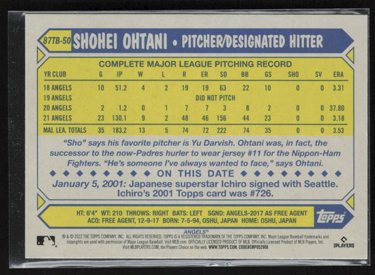 2022 Topps #87TB-50 Shohei Ohtani 1987 Topps 35th Anniversary (series two)