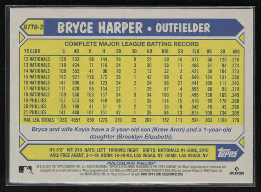 2022 Topps #87TB-2 Bryce Harper 35th Anniversary