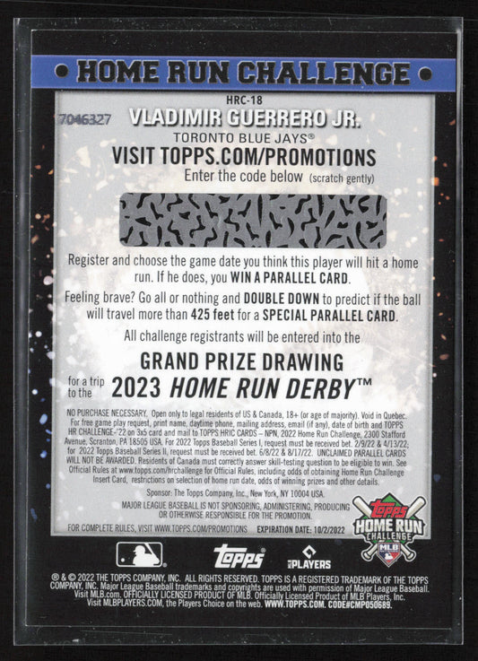 2022 Topps #HRC-18 Vladimir Guerrero Jr. Home Run Challenge Code Cards