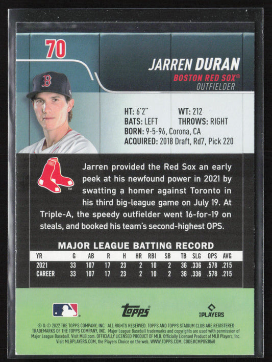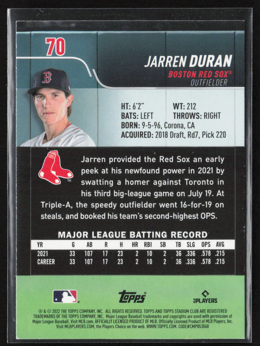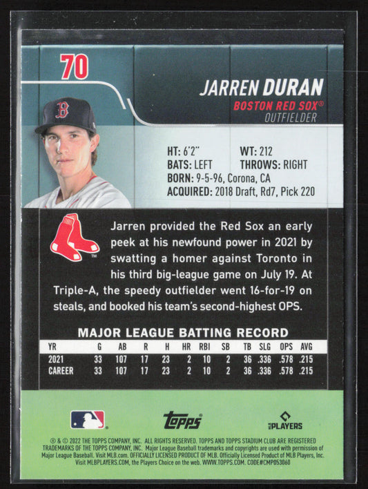 2022 Stadium Club #70 Jarren Duran