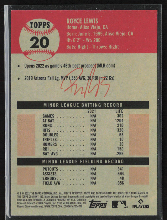 2022 Topps Chrome Platinum Anniversary #20 Royce Lewis Blue Prism Refractor