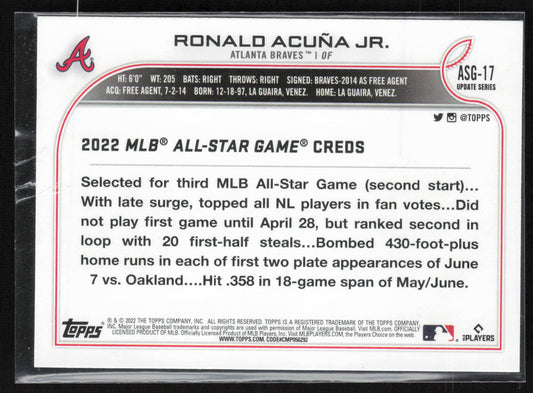 2022 Topps Update #ASG-17 Ronald Acuña Jr. 2022 MLB All-Star Game