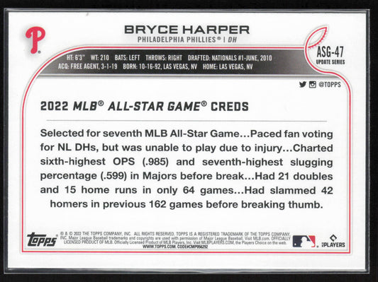2022 Topps Update #ASG-47 Bryce Harper 2022 MLB All-Star Game