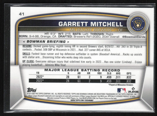 2023 Bowman #41 Garrett Mitchell Mojo Purple Refractors #/250