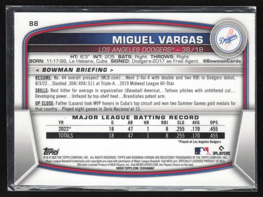 2023 Bowman #88 Miguel Vargas Mojo Refractors