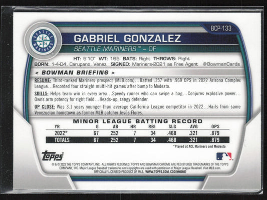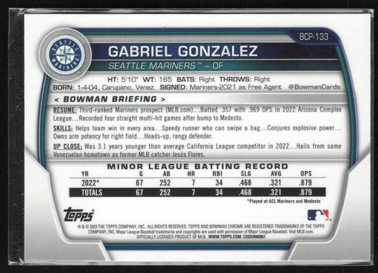 2023 Bowman #BCP-133 Gabriel Gonzalez Chrome Prospects Mojo Refractors