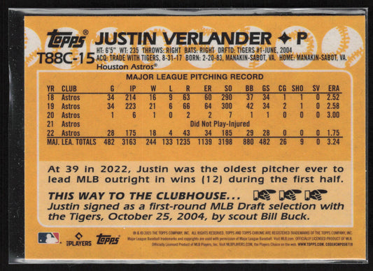 2023 Topps #T88C-15 Justin Verlander 1988 Topps Baseball 35th Anniversary Chrome