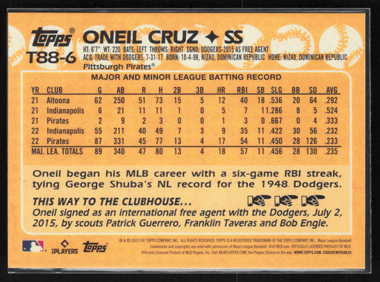 2023 Topps #T88-6 Oneil Cruz 1988 Topps Baseball 35th Anniversary (Series One)