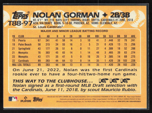 2023 Topps #T88-97 Nolan Gorman 1988 Topps Baseball 35th Anniversary