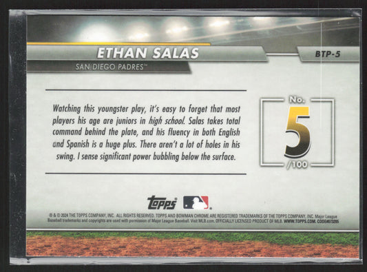 2024 Bowman #BTP-5 Ethan Salas Bowman Scouts' Top 100