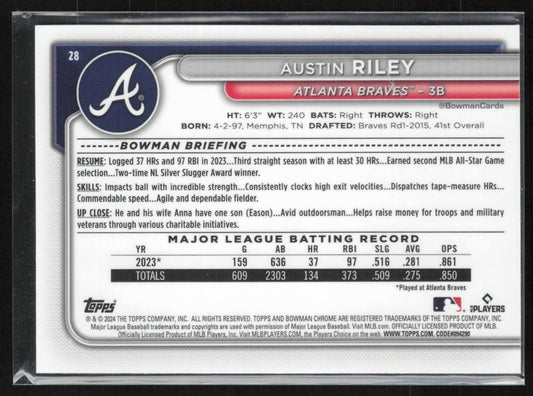 2024 Bowman Chrome #28 Austin Riley Mojo Refractors