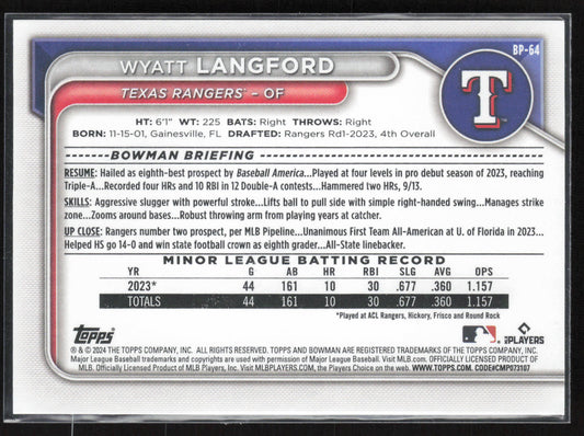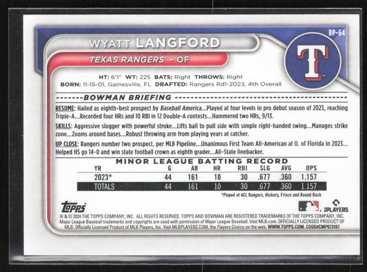 2024 Bowman #BP-64 Wyatt Langford Prospects