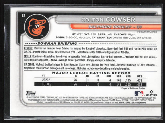 2024 Bowman Chrome #33 Colton Cowser