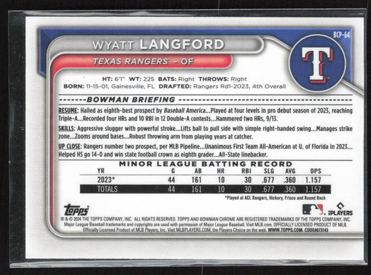2024 Bowman #BCP-64 Wyatt Langford Chrome Prospects
