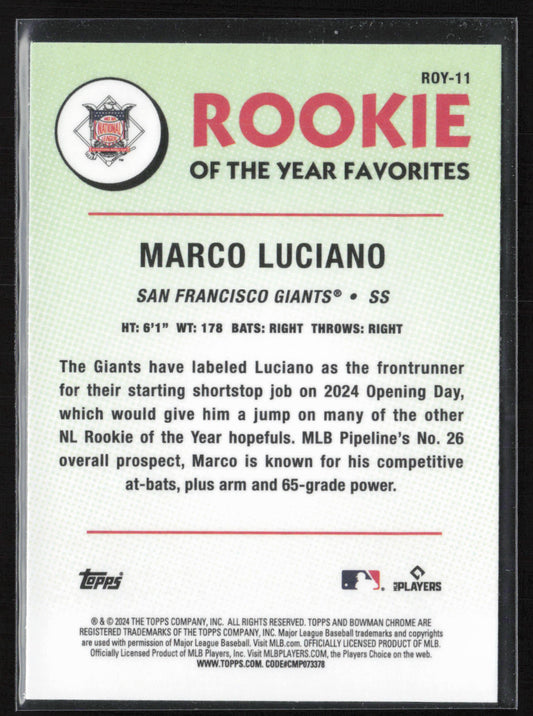 2024 Bowman #ROY-11 Marco Luciano Rookie of the Year Favorites