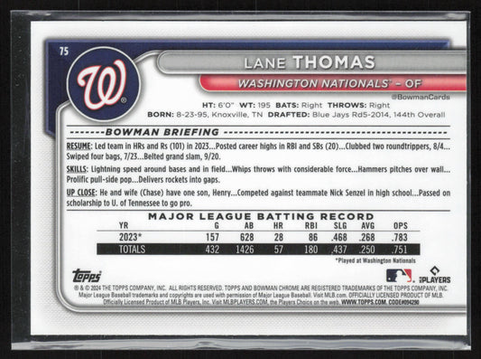 2024 Bowman Chrome #75 Lane Thomas Mojo Refractors