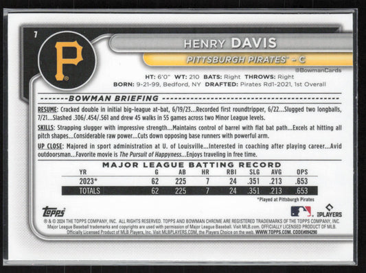 2024 Bowman Chrome #7 Henry Davis Mojo Refractors