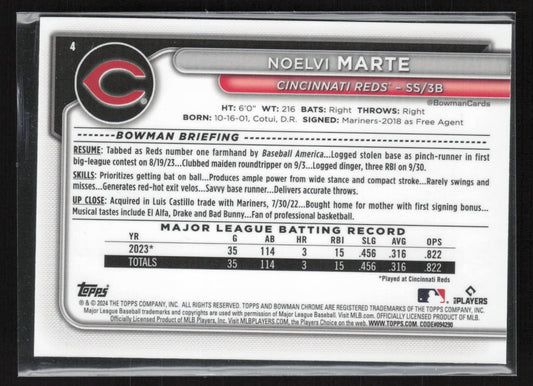 2024 Bowman Chrome #4 Noelvi Marte Mojo Refractors
