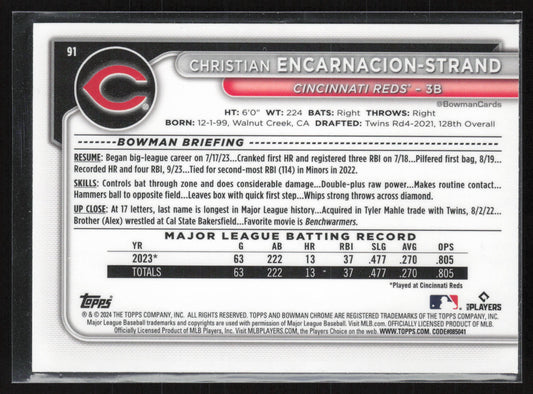 2024 Bowman Chrome #91 Christian Encarnacion-Strand Green Refractors #/99