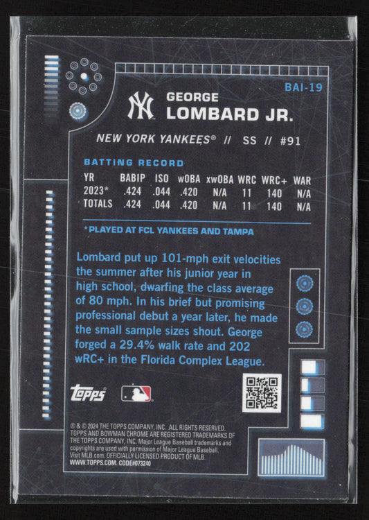 2024 Bowman Chrome #BAI-19 George Lombard Jr. Bowman A.I.