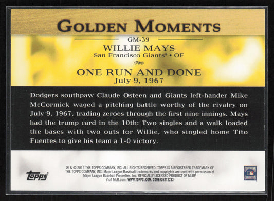 2012 Topps #GM-39 Willie Mays Golden Moments (Series 2)