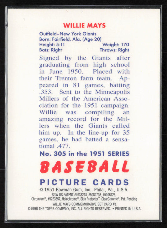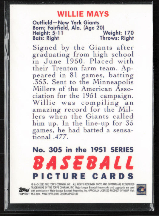2013 Bowman Chrome #305 Willie Mays Rookie Reprint